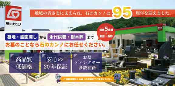 石のカンノは福島県で創業95年余。石材の深い歴史と実績を生かし、高品質でこだわりのお墓の販売や長期保証などのアフターフォローを行います。心から心へ、お墓のご購入検討から購入後まで、お客様が納得して安心できるお墓づくりをサポートいたします。