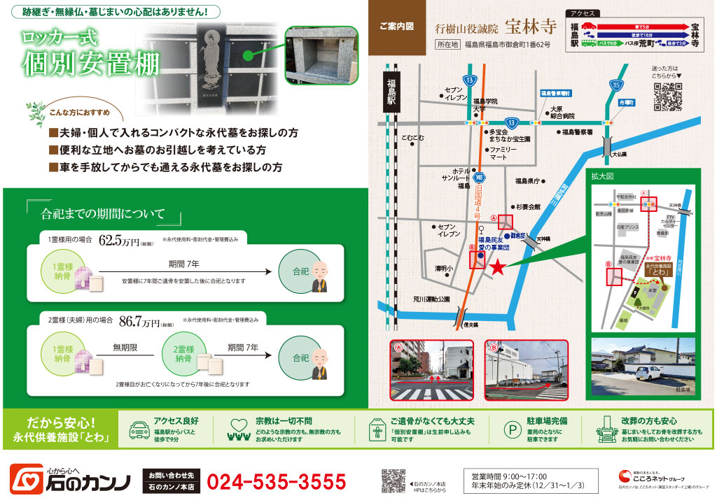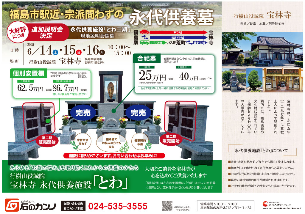 永代供養(えいだいくよう)とは、お墓の継承者がいない場合や費用などに問題がある場合に、霊園や寺院などが遺骨を管理・供養する供養方法です。石のカンノより永代供養墓のあるおすすめの霊園・寺院ご紹介いたします。詳細につきましては、担当店舗までお問い合わせ下さい。