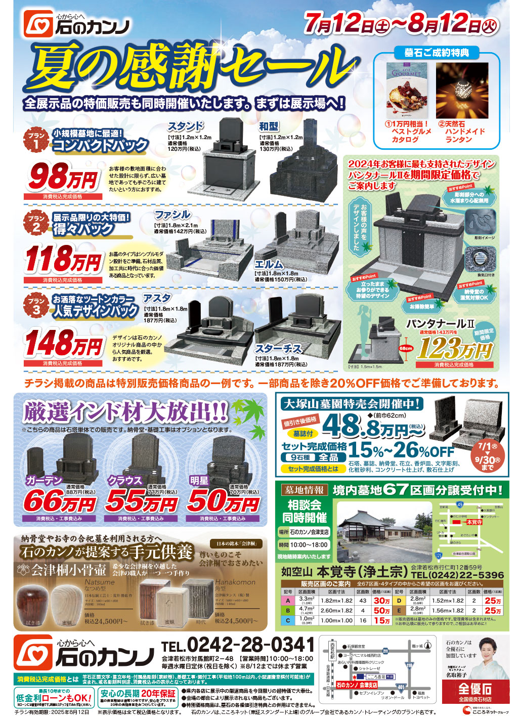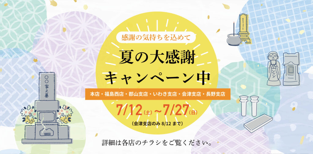 7/12~7/27まで(会津支店のみ8/12まで)開催の夏の大感謝キャンペーンチラシです。下記よりご希望の店舗をお選びください。