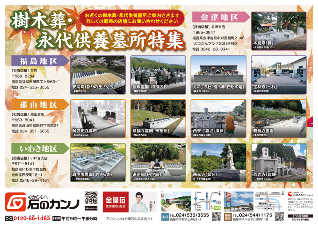 永代供養(えいだいくよう)とは、お墓の継承者がいない場合や費用などに問題がある場合に、霊園や寺院などが遺骨を管理・供養する供養方法です。石のカンノより永代供養墓のあるおすすめの霊園・寺院ご紹介いたします。詳細につきましては、担当店舗までお問い合わせ下さい。