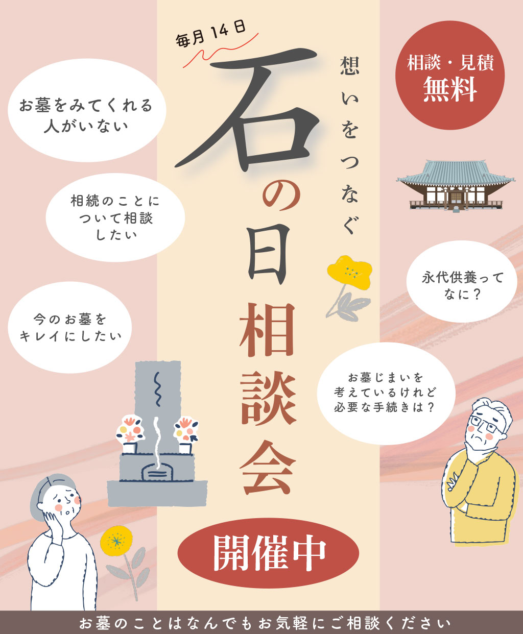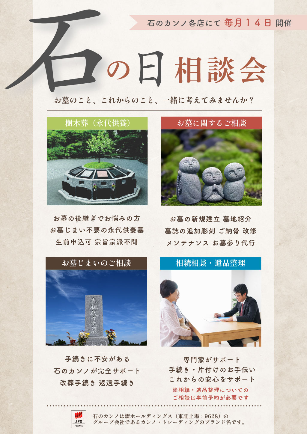 石のカンノの店舗では、墓地・お墓に関する相談、展示商品の見学、見積相談など事前のご予約で優先的にご案内させていただいております。まずは最寄りの店舗までお気軽にご予約・ご来店ください。お電話(9:00~17:00)やメールでのお問合わせ (24時間受付)も承っております。