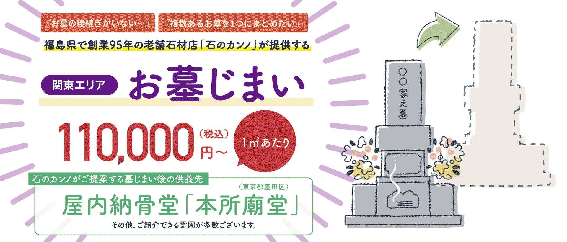 これまで培った東北・関東エリアのネットワークにより地方から首都圏への墓じまいにも対応。ワンストップでお手伝いいたします。