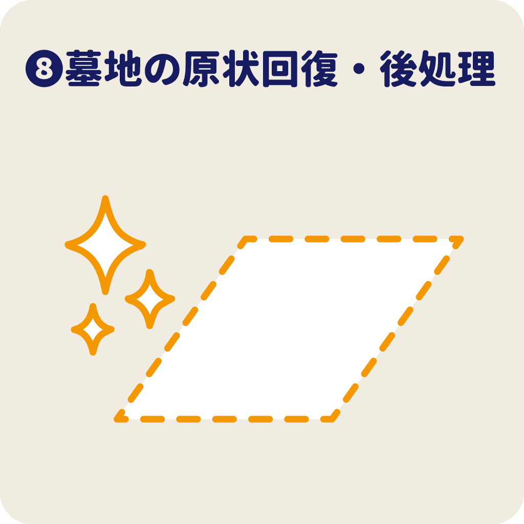 墓石撤去後、墓地を元の状態に戻すことが求められる場合があります。また、関連するすべての費用の精算を行い、墓地使用権の解除手続きを完了させます。