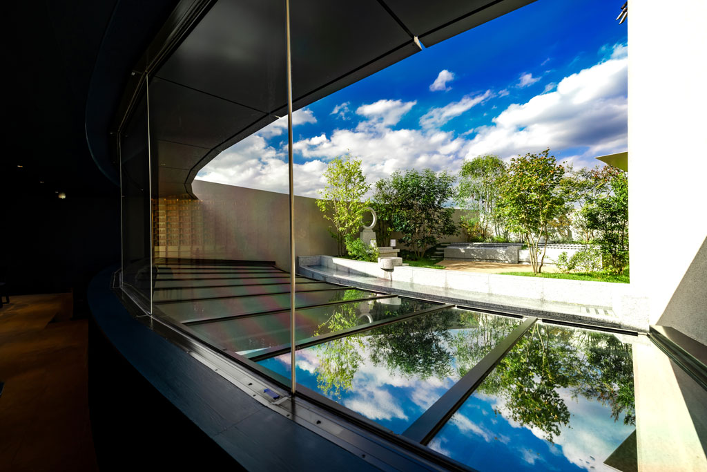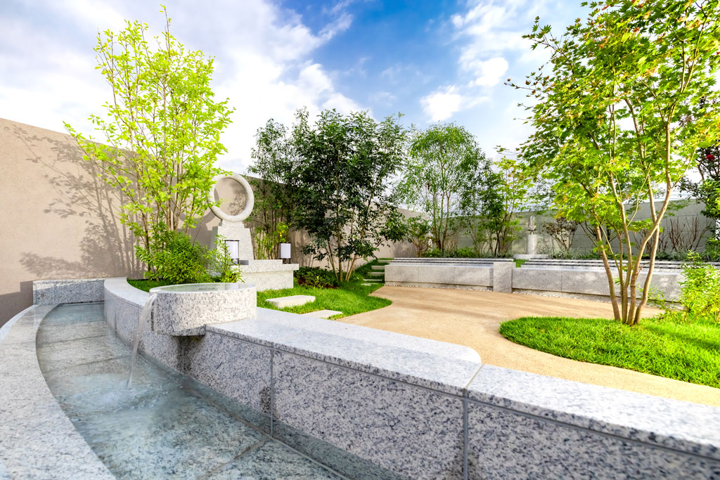 滝が流れる、心静かに故人を偲ぶことができる癒しの空間です。故人はもとより、参拝者のやすらぎも実現。誰もが心地よく過ごせる集いの場を目指します。