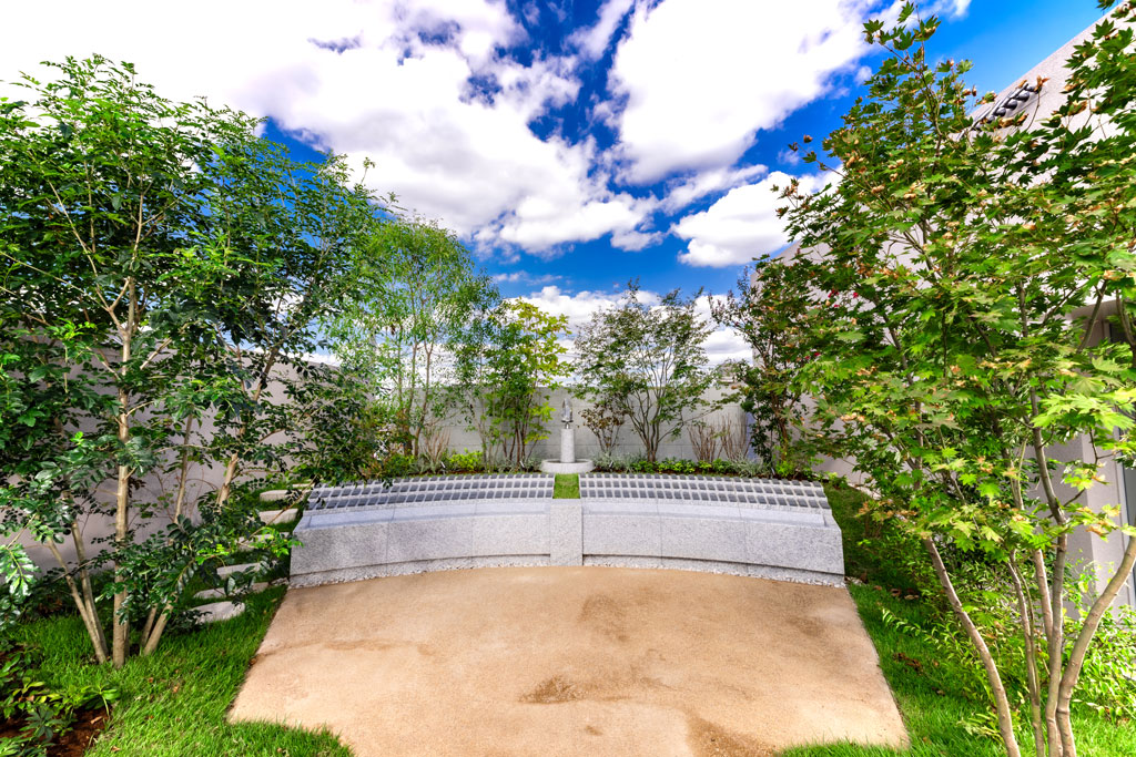 屋上には、納骨堂では初となる樹木葬タイプのガーデン納骨堂と合葬墓碑がございます。