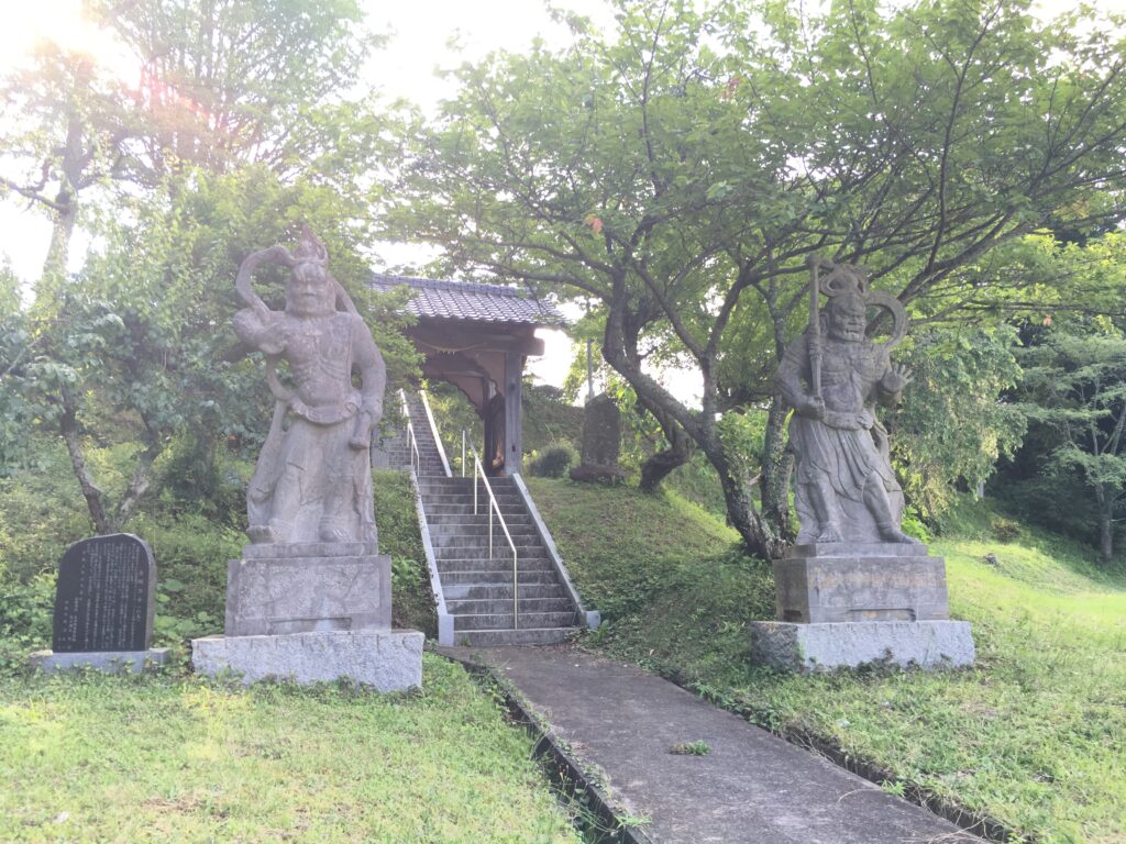 参道入口には、平成3年に建立された石仏の仁王像が安置されています。高さは約10尺におよび、中国華北出身の仏師によって彫刻されたもので、六十五番札所・安養院の大日如来像と同様の様式を持ちます。